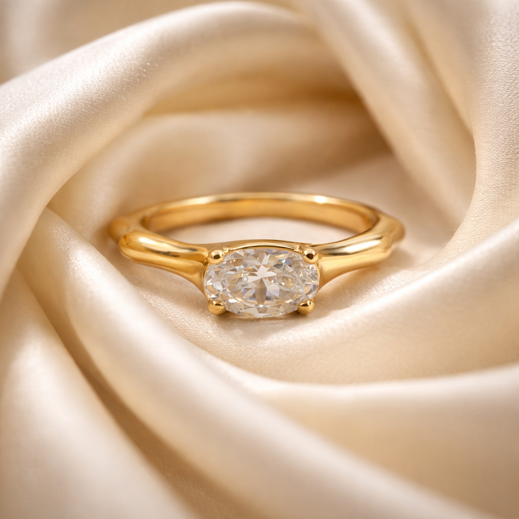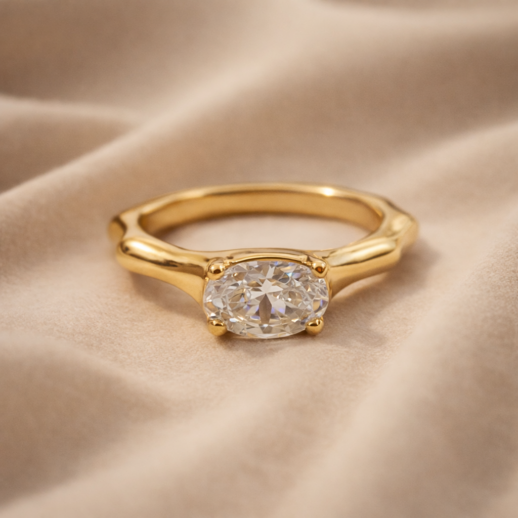 The Elara Oval Solitaire Ring is a refined expression of timeless elegance and modern simplicity. Crafted from premium 316L stainless steel with a radiant gold-tone finish, this graceful design features a brilliant oval-cut stone set in a classic four-prong setting, allowing maximum light reflection for exceptional sparkle.
