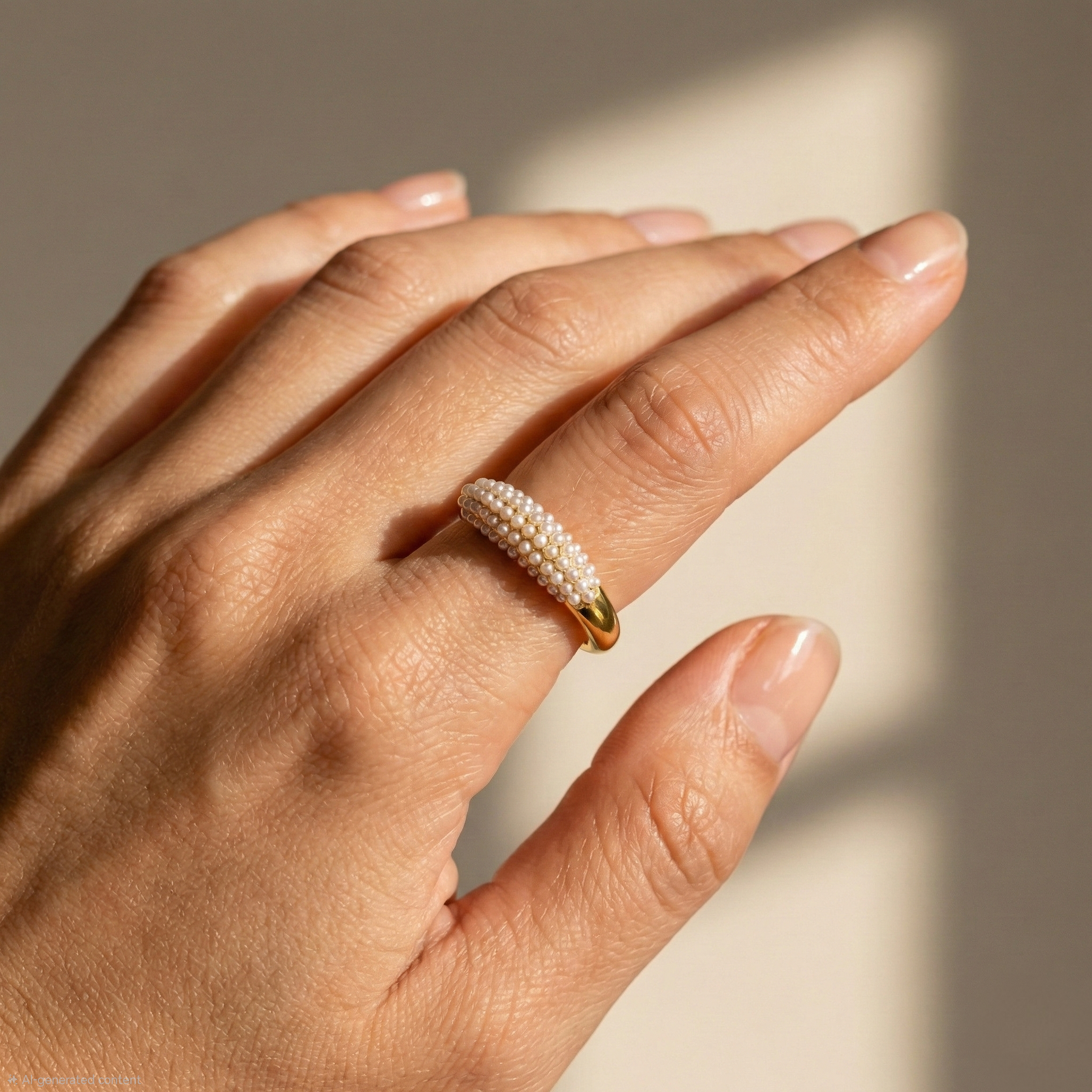 Designed to be anti-tarnish, water-resistant, and hypoallergenic, the Lumina Ring maintains its shine without fading, rusting, or irritating sensitive skin. Its adjustable open silhouette ensures a flexible, comfortable fit, while the smooth polished gold band adds a refined contrast to the intricate pearl surface.