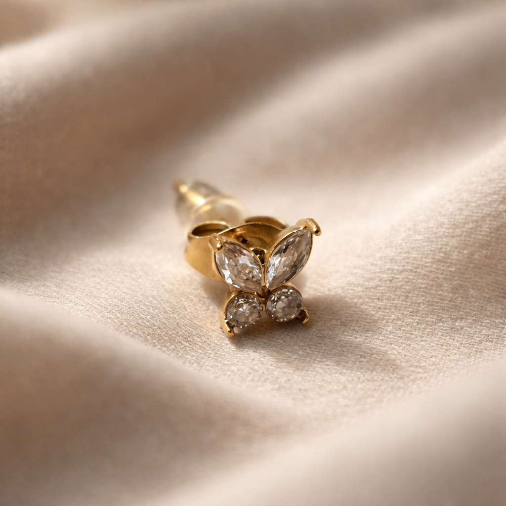 Designed to be anti-tarnish, water-resistant, and hypoallergenic, the Flutter Bloom Studs are perfect for everyday wear, maintaining their shine without fading, rusting, or irritating sensitive ears. Their lightweight construction ensures lasting comfort, while the refined stud design makes them effortlessly versatile.
